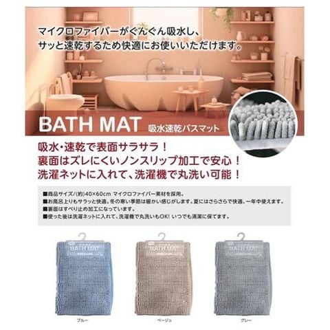 【吸水速乾バスマット 40cm×60cm ブルーの商品詳細】