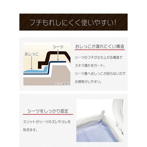 ●シーツのフチが立ち上がる構造でおしっこのシーツ裏への回り込みをガードします。