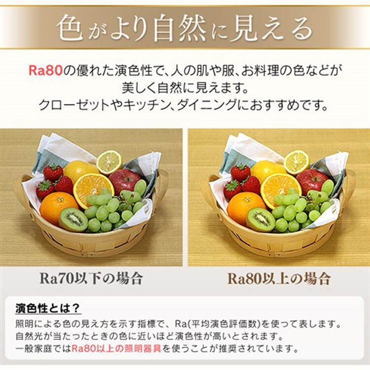 太陽光に近い自然な光。メイクをする・服を選ぶ場所におすすめ。