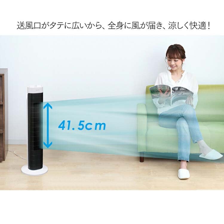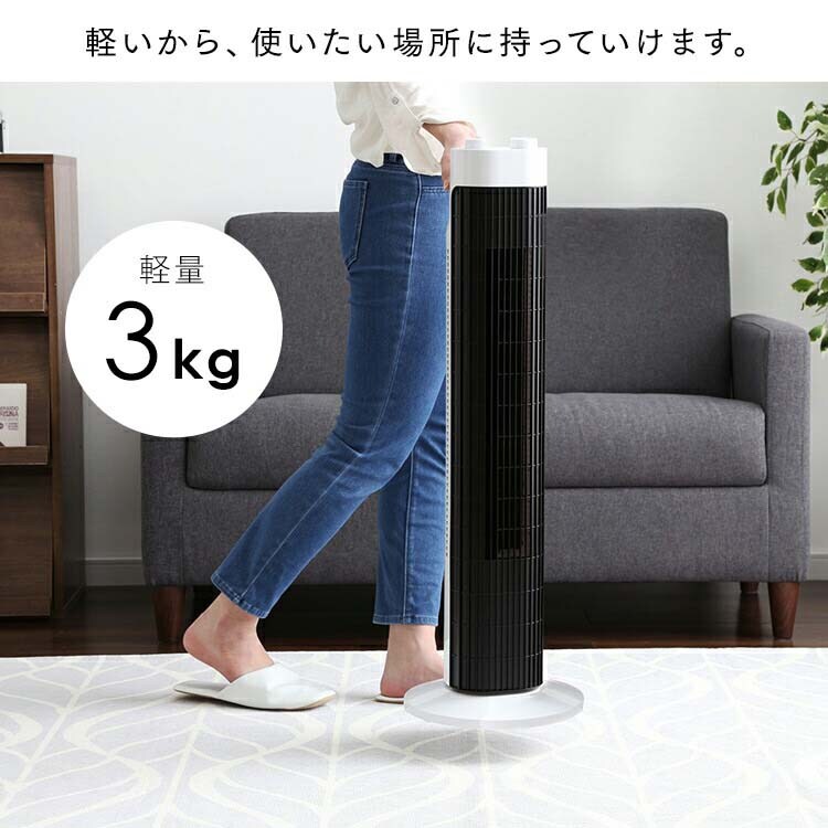 ●タワーファンならではの操作性:省スペースで設置可能&立ったままでもらくらく操作。持ち手付きで運びやすく軽量なので、使いたい場所にサッと移動できます。