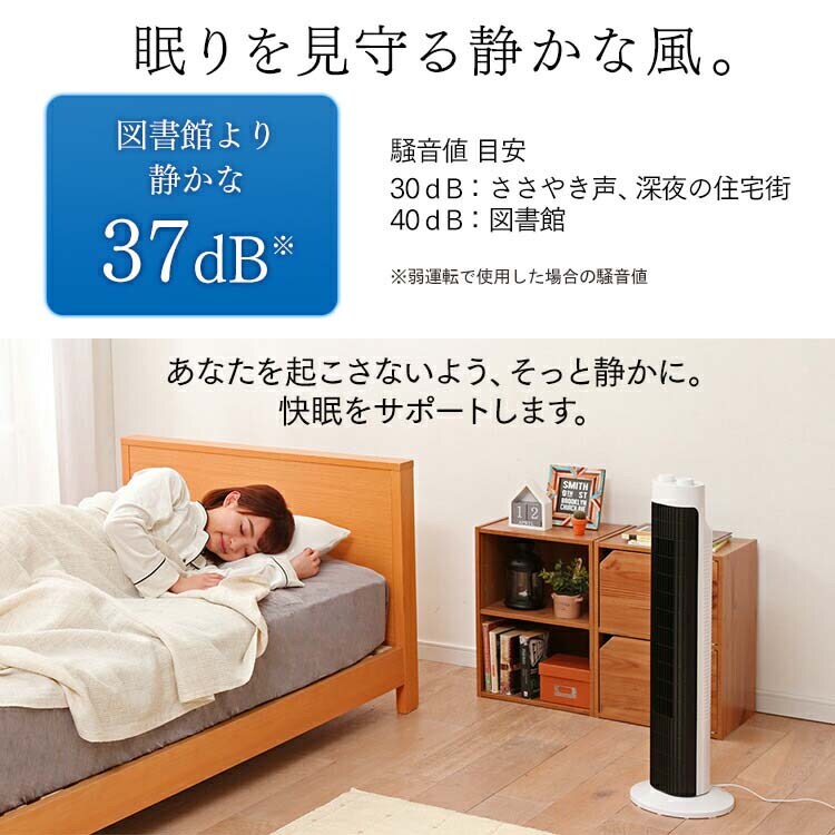 | ・商品サイズ(cm):幅約24.5×奥行約24.5×高さ約77 ・質量(電源コードを含む):約3.0kg ・電源:AC100V(50/60Hz共用) ・消費電力:(50Hz)強:27W/中:25W/弱:23W、(60Hz)強:30W/中:27W/弱:24W ・風量調整:3段階(弱・中・強) ・首振り機能:左右首振り ・切タイマー:30・60・90・120・150・180分 ・電源コード長さ:約1.8m |