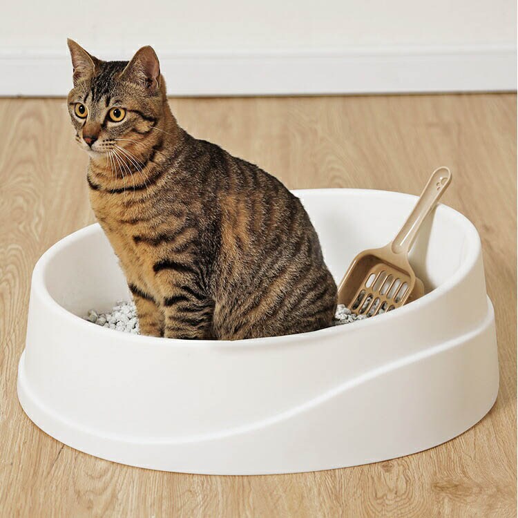 ●台形型で倒れにくい構造のオープンタイプの猫トイレです。