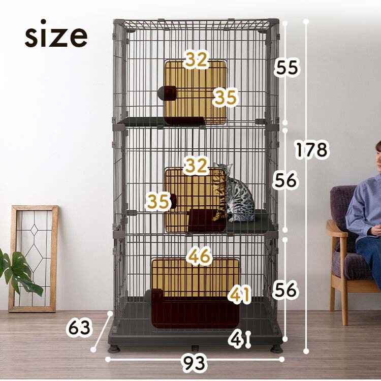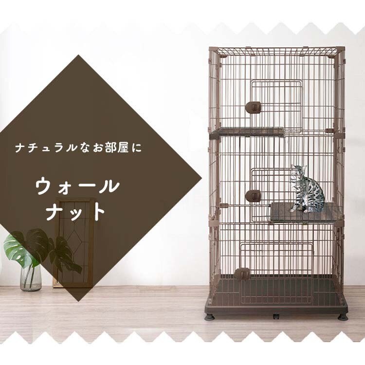 アイリスオーヤマ 猫 ケージ 3段 ペットケージ ウォールナット PEC-903V (1個)