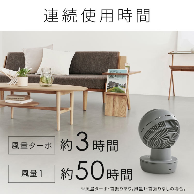 ●風量6(ターボ):約3時間/風量1:約50時間。