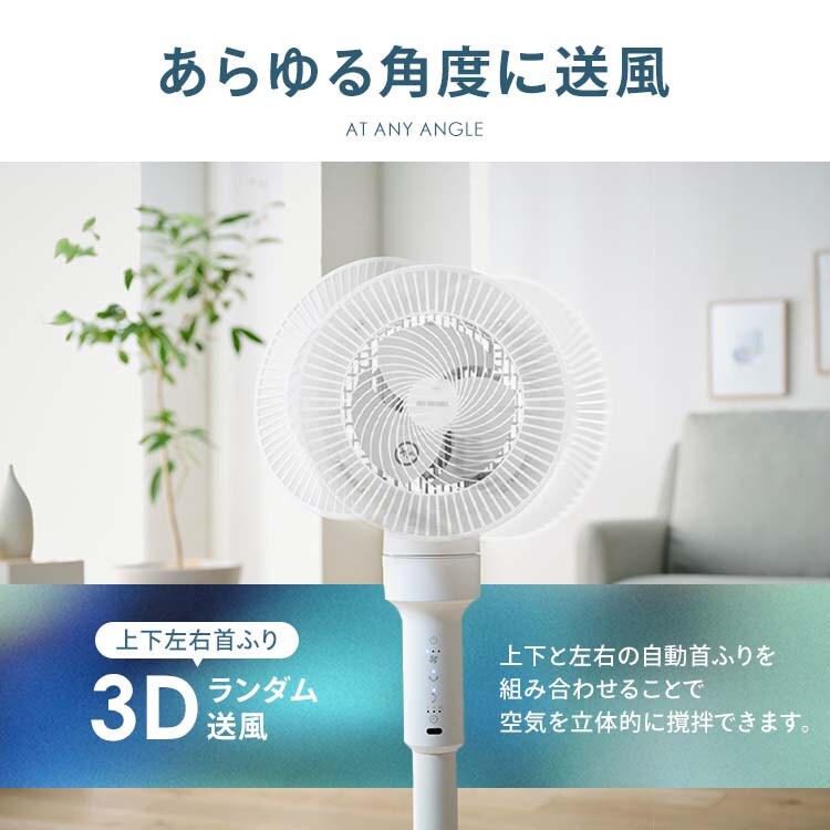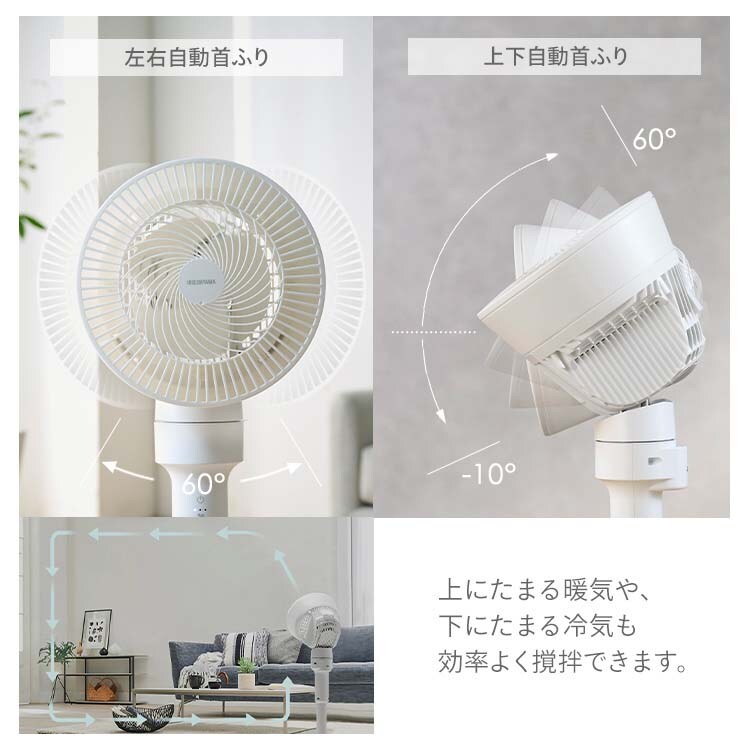 ●上下と左右の自動首ふりを立体的に組み合わせることにより、強力に空気を撹拌します。