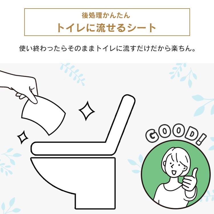※トイレのつまりを避けるため、必ず1枚ずつ「大」の水流で流してください。水流が弱いとトイレにつまる可能性があります。