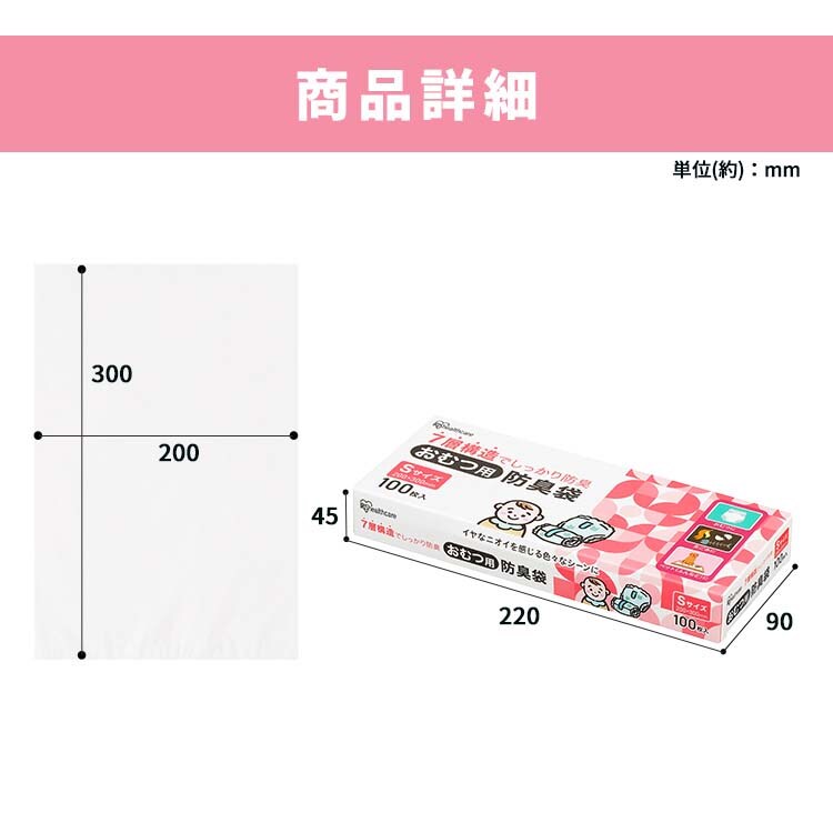 【アイリスオーヤマ おむつ用防臭袋 Sサイズ DBB-S100の商品詳細】