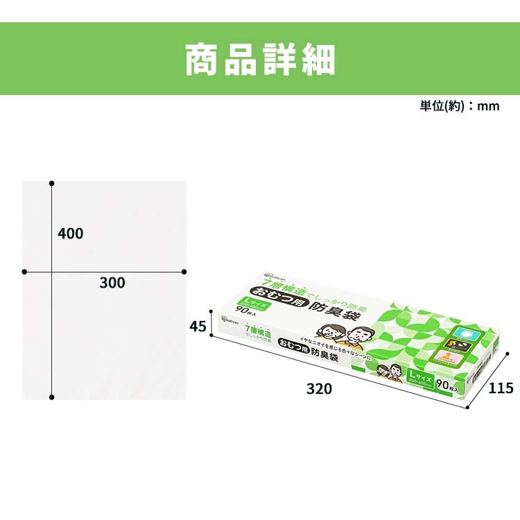 【アイリスオーヤマ おむつ用防臭袋 Lサイズ DBB-L90の商品詳細】