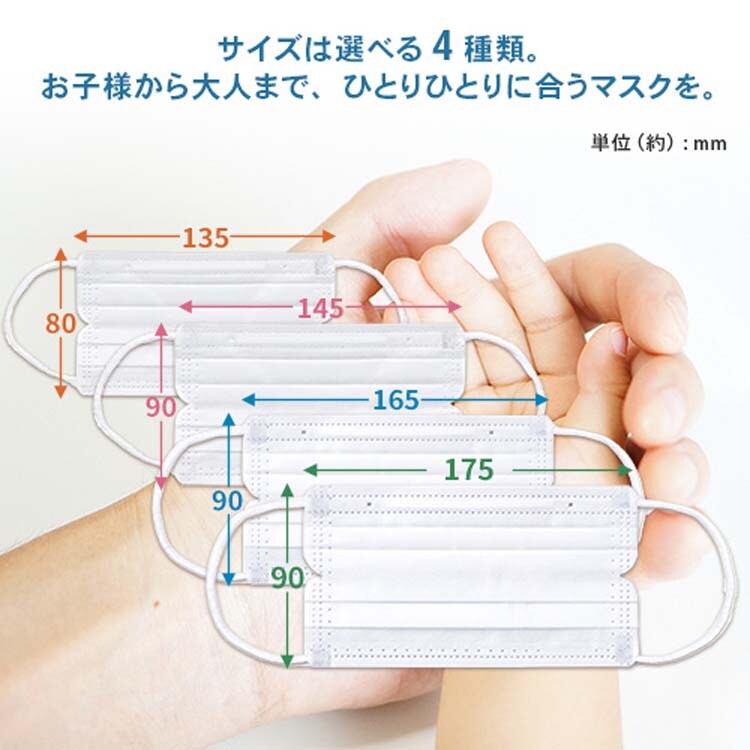 | ・内容量 120枚入り(60枚×2袋) ・品名 マスク(プリーツ型マスク) ・商品サイズ(cm) 幅約17.5×高さ約9(大きめサイズ) ・材質 本体、フィルター:ポリプロピレン 耳ひも:ポリエステル、ポリウレタン ノーズフィッター:ポリエチレン |