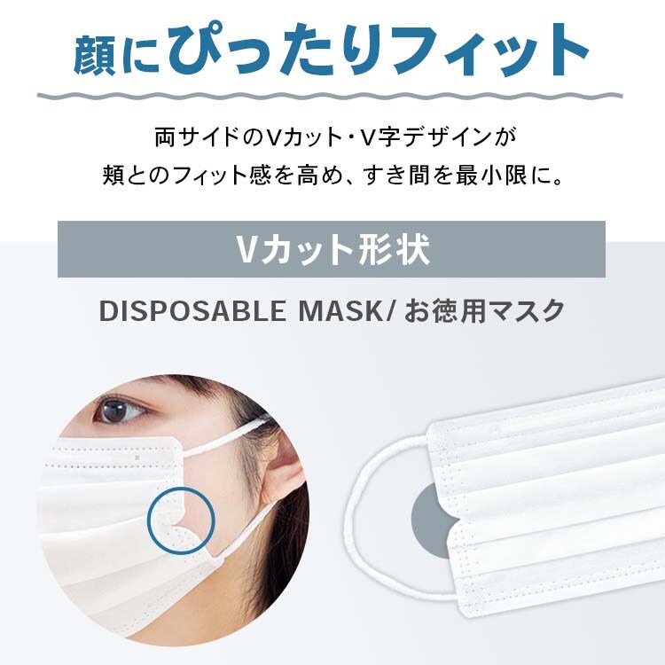 ●側面両端Vカット加工しているので、ほほとのすき間を低減し、長時間ぴったりフィットします。
