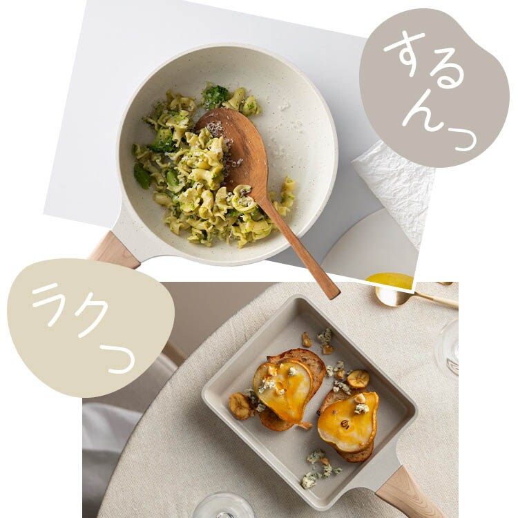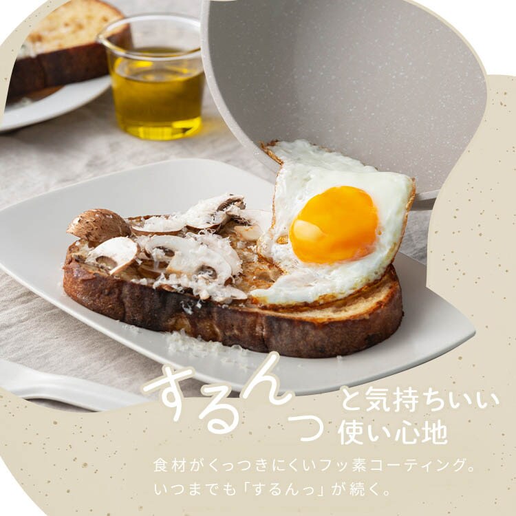 ●食材がくっつきにくいフッ素コーティングで、いつまでもするんっと気持ちいい使い心地。