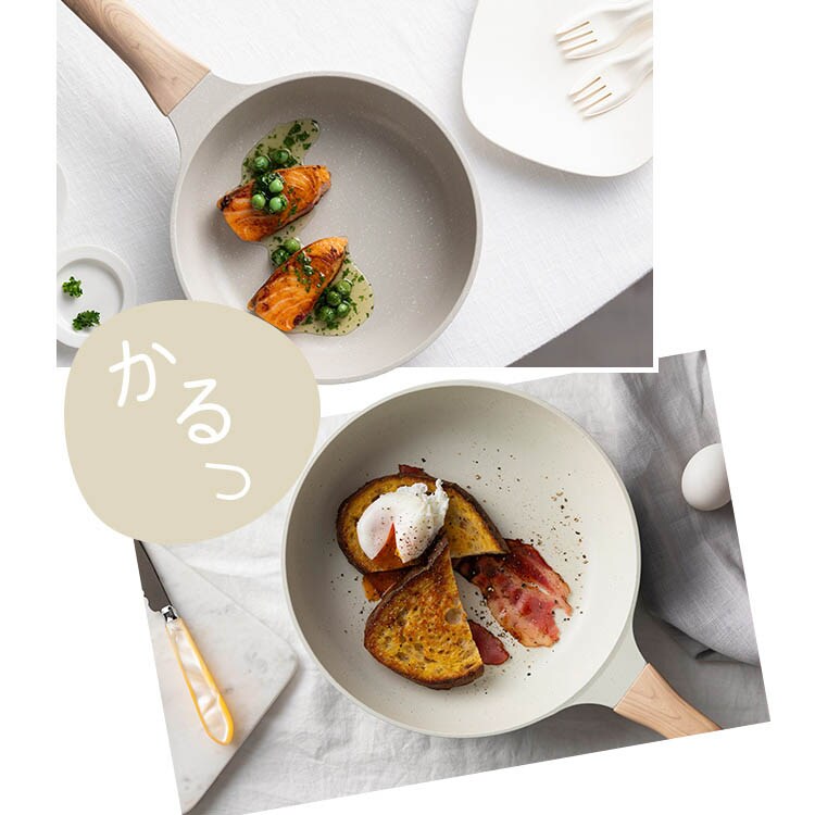| ★商品サイズ(cm) ・幅約43×奥行約25×高さ約8.7 ★重量 ・約540g ★満水容量:約2.1L ★寸法:約24cm ★表面加工 ・内側:ふっ素樹脂塗膜加工 ・外側:セラミック塗膜加工 ★材質 ・本体:アルミニウム合金 ・はり底:ステンレス鋼(クロム18%) (底の厚さ/3.0mm はり底を含む) ・ハンドル:フェノール樹脂(耐熱温度140度) |