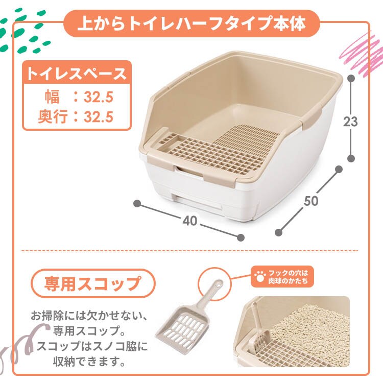 | トイレ本体、専用スコップ、消臭サンド:木砂(大きめ)2.2L、消臭シート:通常用シート4枚 |