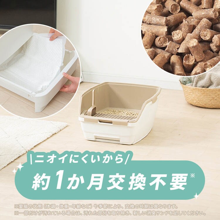 ●「ラクリーン 消臭システムトイレ オープンタイプ」+「消臭サンド」+「消臭シート」の組み合わせで、気になるにおいを抑える猫用システムトイレです。(トイレ)