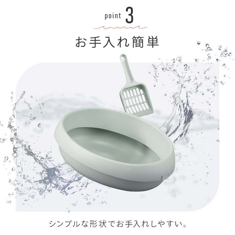 | ・製品サイズ(cm):幅約39×奥行約31×高さ約13 ・製品質量:約478g ・材質:ポリプロピレン ・付属品:スコップ ※猫砂は付属しません。 |