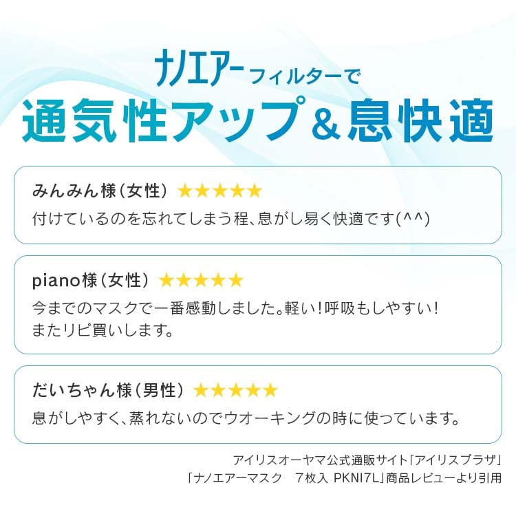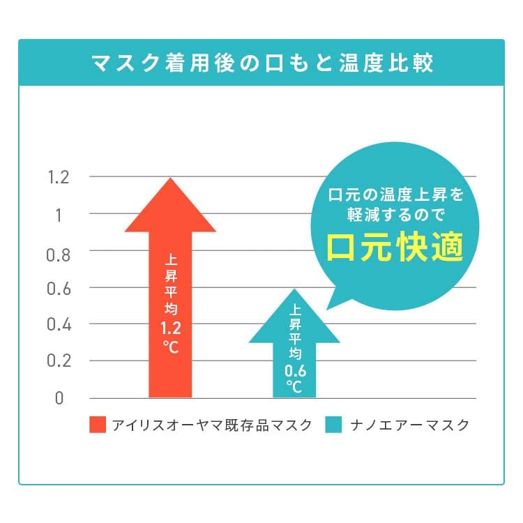 ●特殊ナノファイバー加工の中間層が着用時の口元温度上昇を緩和し、蒸れによる不快感を軽減。