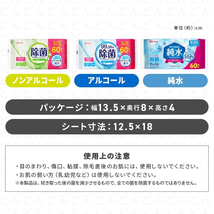 【アイリスオーヤマ ウェットティッシュ ノンアルコール 純粋99% WTS-60Pの商品詳細】