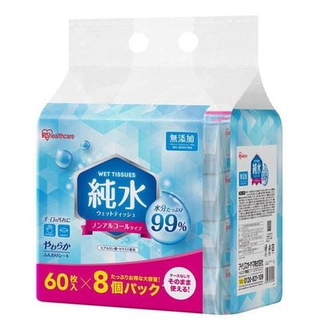アイリスオーヤマ ウェットティッシュ ノンアルコール 純粋99% WTS-60P (60枚×8個)