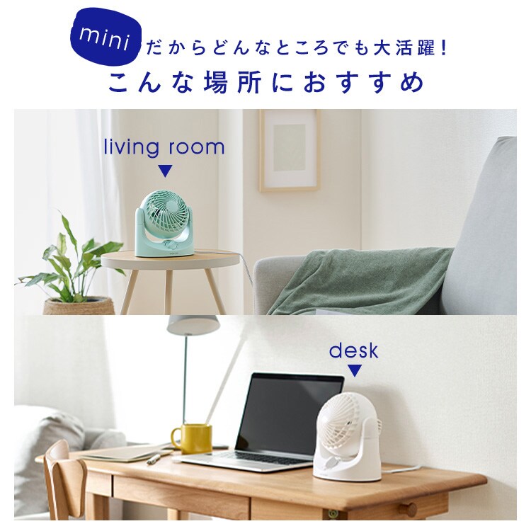 ●マカロンのようにコロンとしたフォルムの卓上扇風機です。