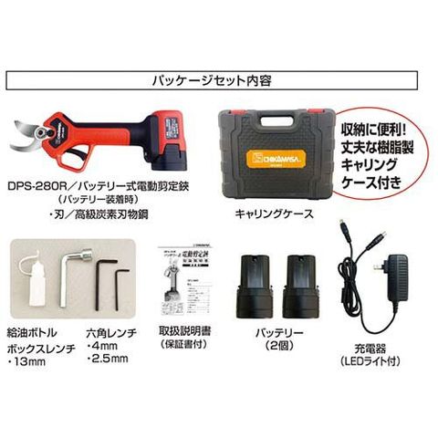 【近正 バッテリー式電動剪定鋏 高速切断・電池残量表示機能 DPS-280Rの商品詳細】