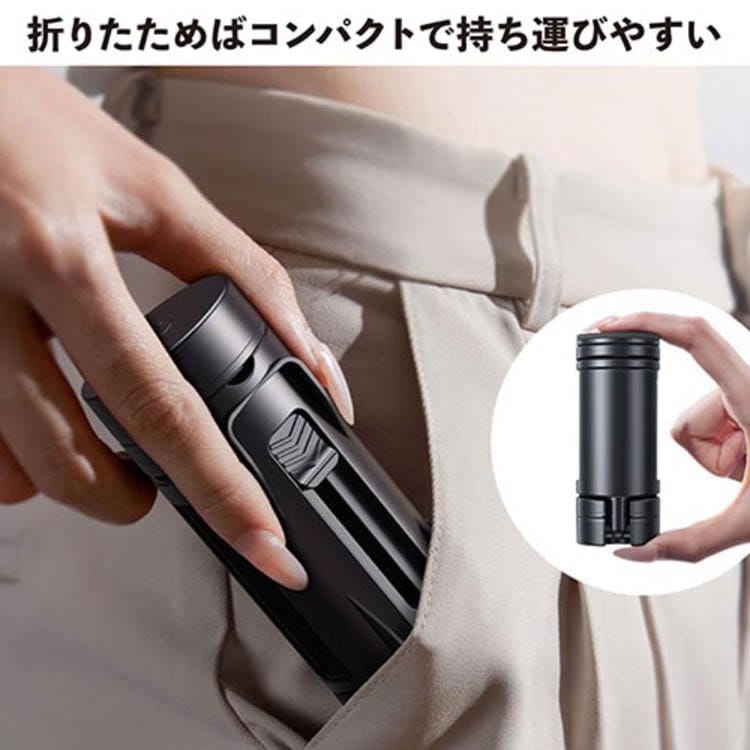 ●折りたたみができ、手のひらサイズとポケットに入るほどのコンパクト設計なので、出張や旅行のお供に最適。