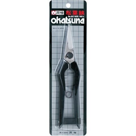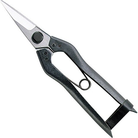 庭園の松の木の手入れ用の鋏です。高級刃物鋼を材料とし、刃持ちと切れ味を発揮します。バネ付です。