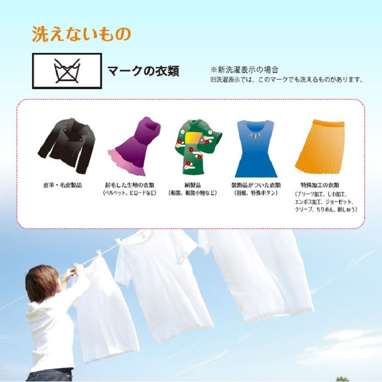 ●大切な衣類は、おウチでドライニング。ドライニングのお洗濯方法は、衣類をたたんだまま「つけおく」「すすぐ」「脱水する」の3ステップ。衣類にやさしいお洗濯方法だから、ドライマークや大切な衣類がおウチでカンタンに洗えます。洗いたいときに、いつでも気軽に洗えて、衣類が清潔いい気持ち。クリーニング代も節約できます。