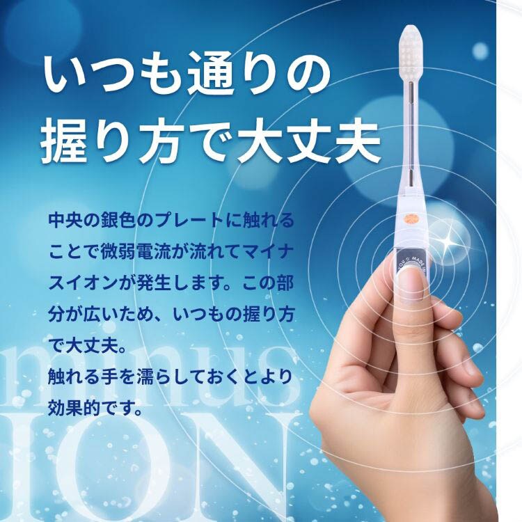 ・柄の金属板に指または手のひらが触れるように握りブラッシングしてください。