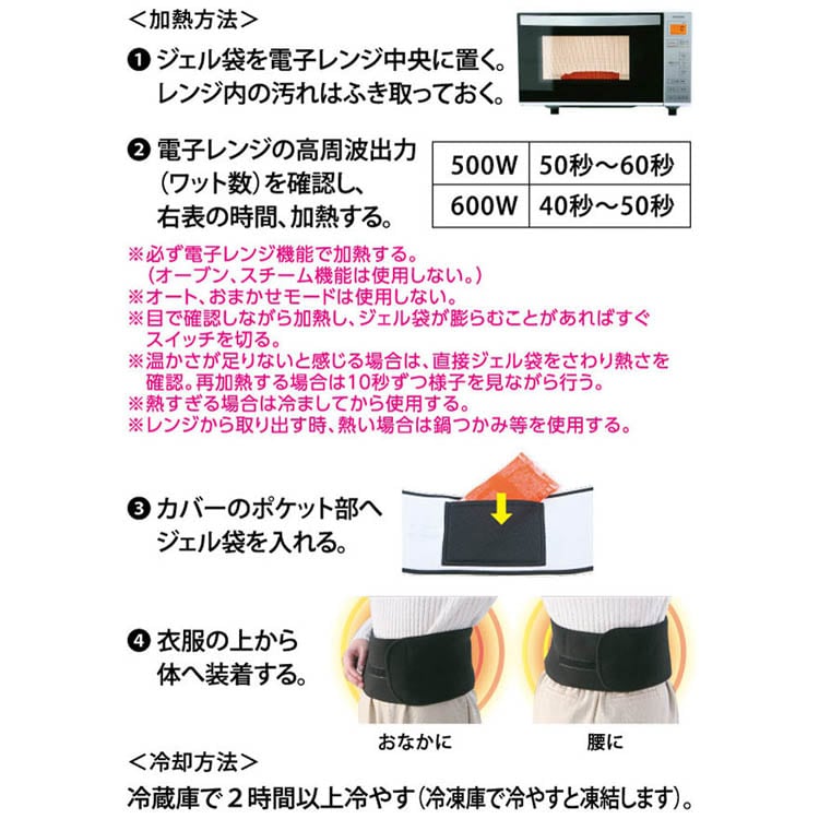 ・電子レンジの製造者によりジェル袋の温度が変わる場合があります。