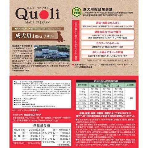 【獣医師監修 Quoli(クオリ) 成犬用 チキンの商品詳細】