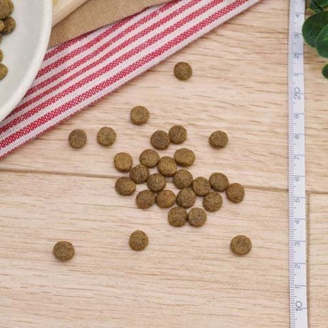 | たんぱく質:25.0%以上、脂質:8.0%以上、粗繊維:3.0%以下、灰分:8.0%以下、水分:10.0%以下、カルシウム:1.0%以上、リン:0.8%以上、ナトリウム:0.3%以上、マグネシウム:0.12%(標準分:析値)、代謝エネルギー:345kcal/100g |