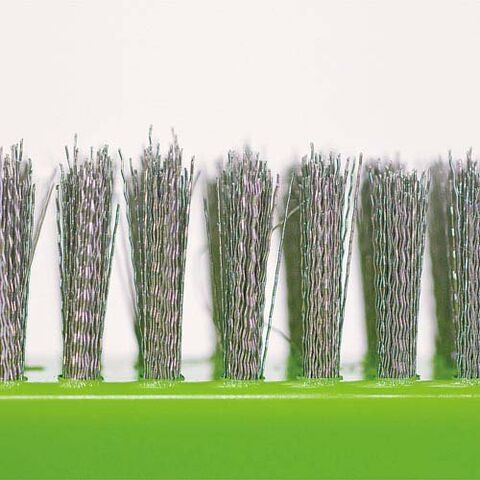 ●ステンレスの硬めのブラシがコンクリート・石などの硬い素材についたコケをすばやくこすり落とします。