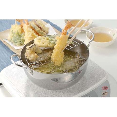 | サイズ(mm):257x202x100 深さ(mm):74 高さ(mm):75 重量(g):590 満水容量(L):2 素材・材質:本体:ステンレス鋼、本体内面:ラセン研磨仕上げ、本体外面:ミラー研磨仕上げ、取手:ステンレス鋼、揚げアミ:鉄 200V/100V IH対応 |