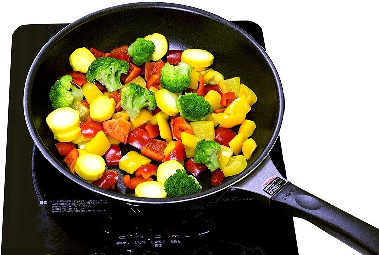 | 本体:2層クラッド材(底厚2.6mm)(内面:アルミニウム合金、外側:ステンレス鋼) 本体内面:ふっ素樹脂塗膜加工 本体外面:ミラー研磨仕上げ ハンドル:フェノール樹脂 |