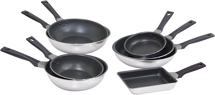 | 本体:2層クラッド材(底厚2.6mm)(内面:アルミニウム合金、外側:ステンレス鋼) 本体内面:ふっ素樹脂塗膜加工 本体外面:ミラー研磨仕上げ ハンドル:フェノール樹脂 |