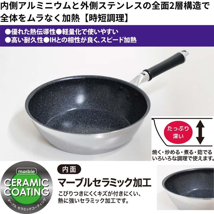●本体は電磁調理器に適した前面2層クラッド材(ステンレス-アルミ複合材)を採用。