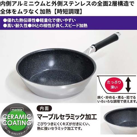 【ウルシヤマ金属工業 セラブル IH・ガス火対応 いため鍋 28cm CRB-W28の商品詳細】