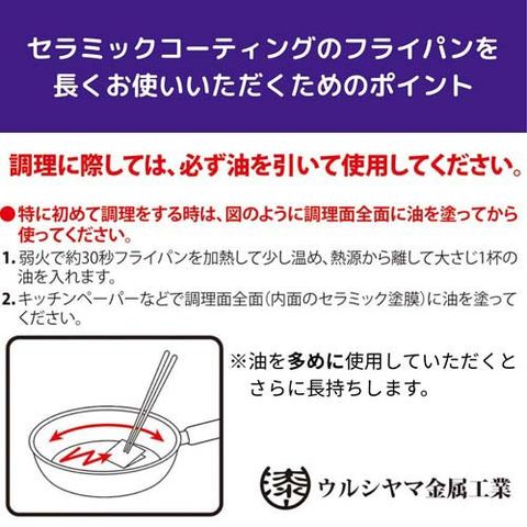 ●こびりつきにくくキズが付きにくい、熱に強いセラミック加工。