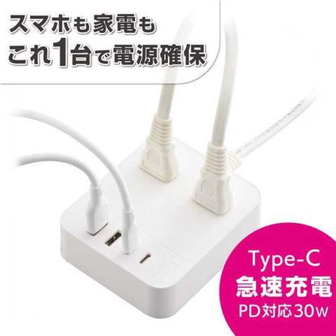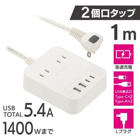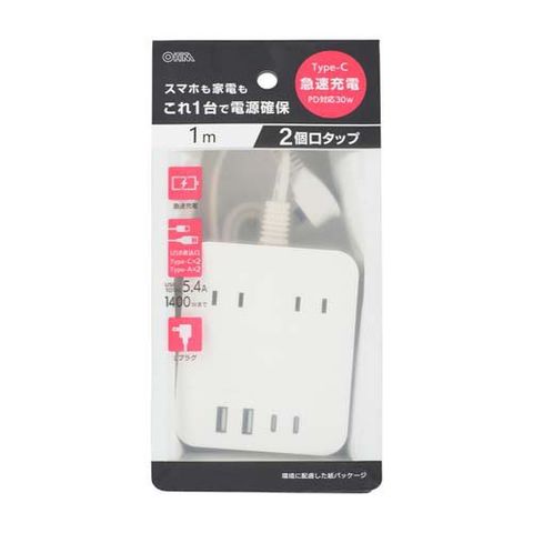 2個口タップPD対応30W1m白 HS-T21U4W25 (1個)
