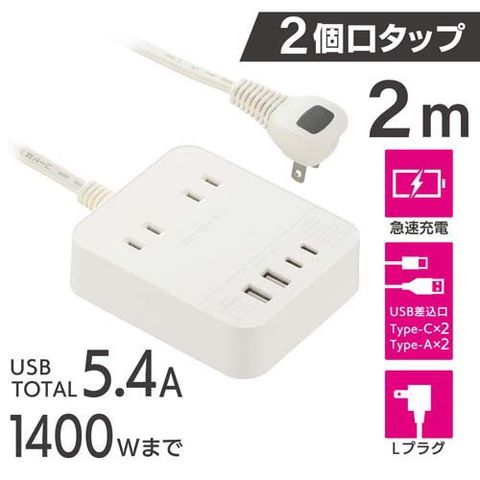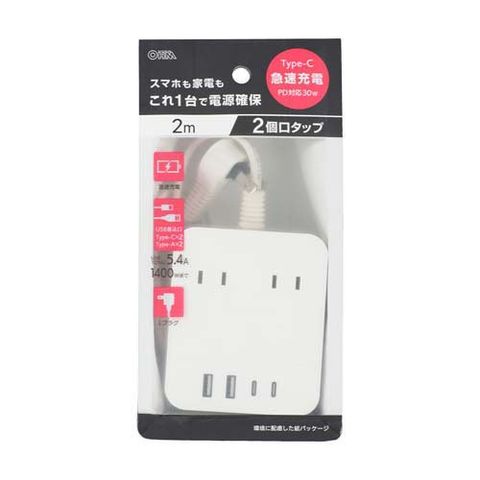 2個口タップPD対応30W2m白 HS-T22U4W25 (1個)