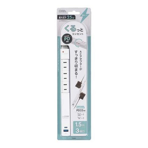 回転スリムタップ雷ガード付きPD対応25W3個口1.5m HS-T3RU1C1KF- (1個)