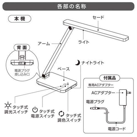 【LEDデスクライト4段階調光3段階調色 520lmホワイトの商品詳細】