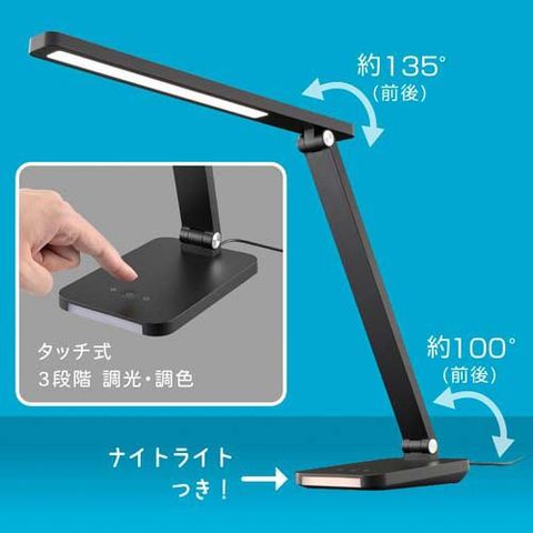 LEDデスクライト4段階調光3段階調色 520lmブラック (1個)