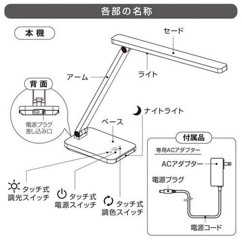●タッチ式4段階調光・3段階調色(白色/昼光色/電球色)