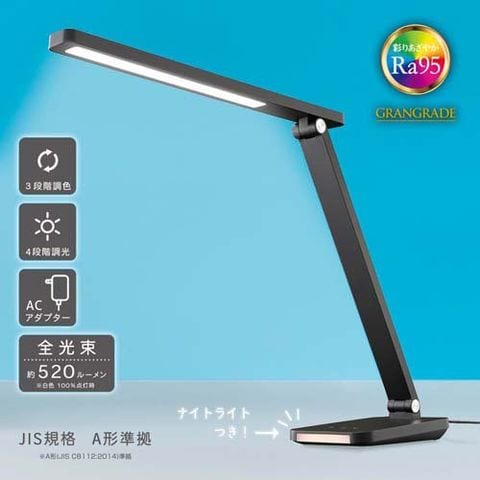 【LEDデスクライト4段階調光3段階調色 520lmブラックの商品詳細】