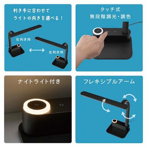 【LEDデスクライト無段階調光3段階調色825lmブラックの商品詳細】