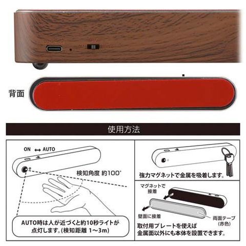 【LEDナイトライト人感&明暗センサー付き濃い木目調 NIT-BK06-Kの商品詳細】