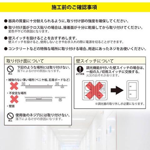 ※調光機能が付いた壁スイッチの場合は、一般の入/切用スイッチに交換してください。(調光器の取り外しが必要になります。)工事店・電器店に依頼してください。