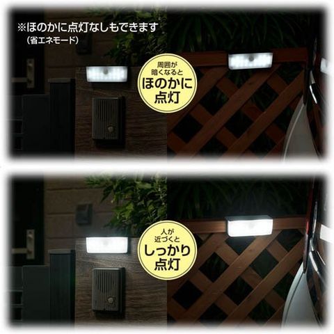 ・周囲が暗くなるとほのかに点灯、動きを検知するとしっかり点灯モード(通常モード)