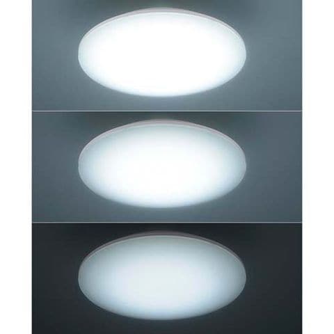 | ・電源:AC100V 50/60Hz ・消費電力:24.5W(100%点灯時)、11.5W(50%点灯時)、2.9W(10%点灯時) ・使用光源:LED×72灯使用(交換不可)/昼光色 ・全光束:2900ルーメン(100%点灯時)、1500ルーメン(50%点灯時)、400ルーメン(10%点灯時) ・エネルギー消費効率:118.3 lm/W(100%点灯時) ・平均演色評価数:Ra80 ・段階調光機能:100%-50%-10% ・本体寸法:(約)φ280×高さ79mm(プラグ含まず) ・質量:約530g |